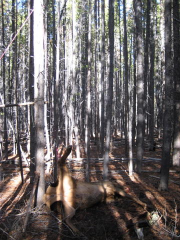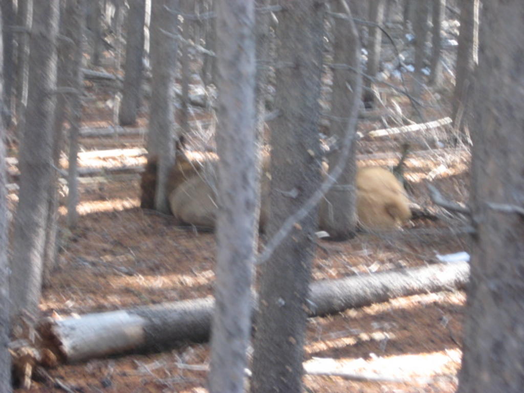 pines. I spotted the butt of an elk with the binoculars through the
